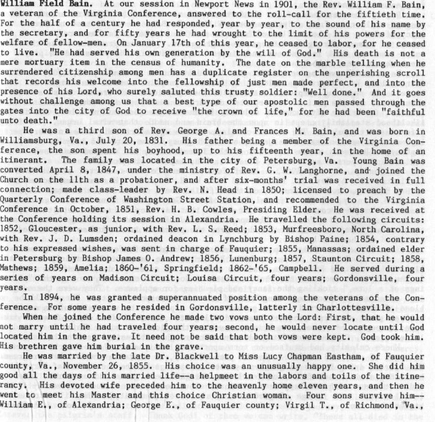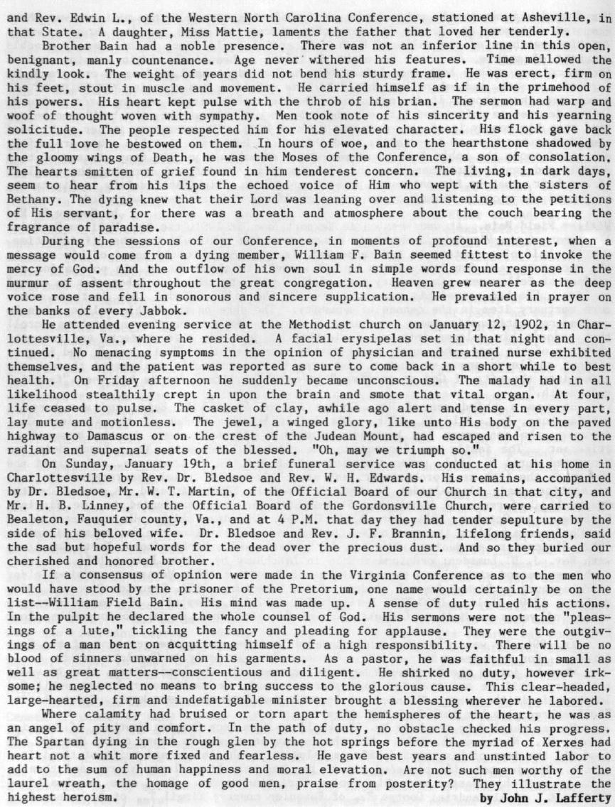 William Field Bain biography - Text Images from "Memoirs -- 200 Years" - Soldiers of the Cross, 1785-1987" by W.D. Keene, Jr.