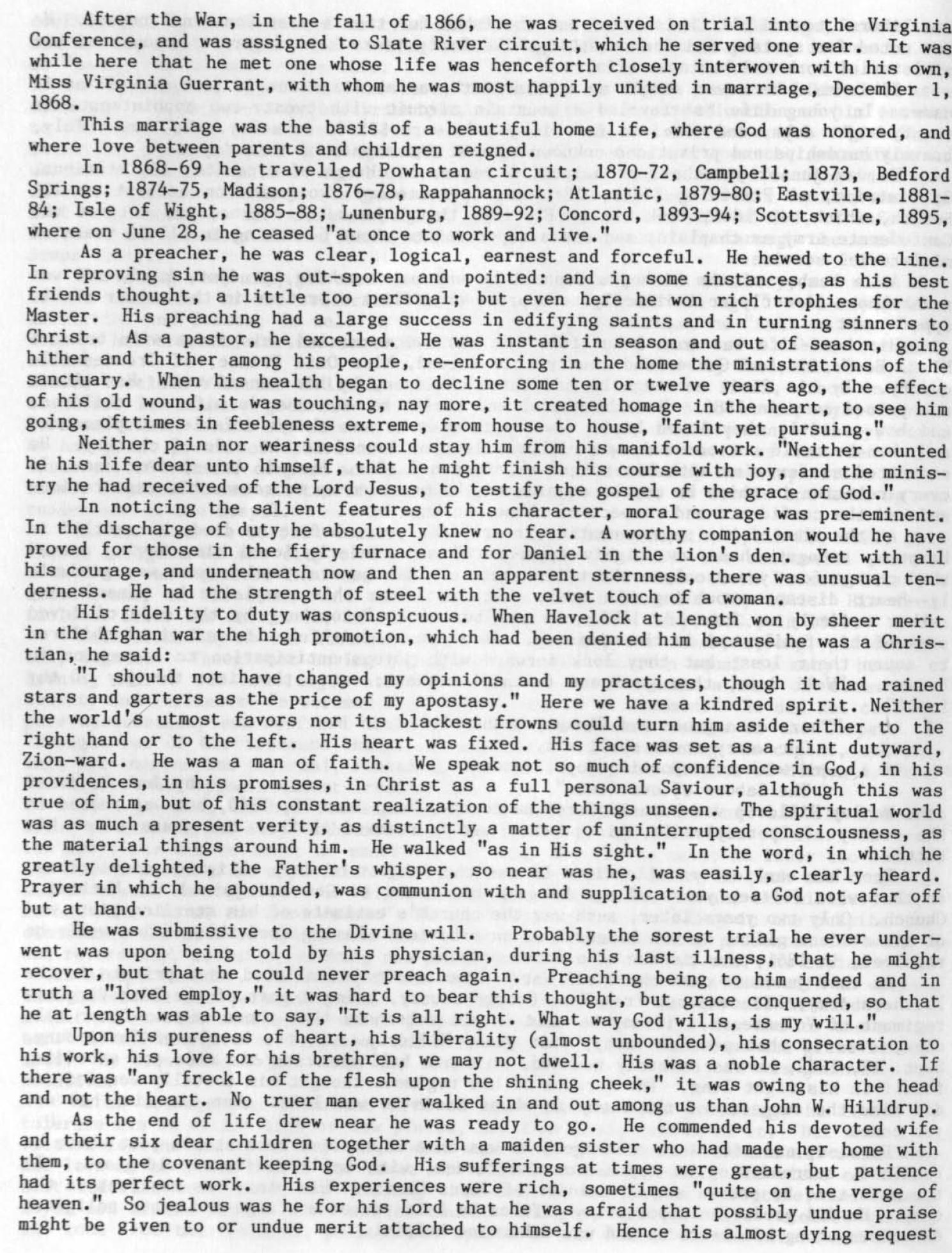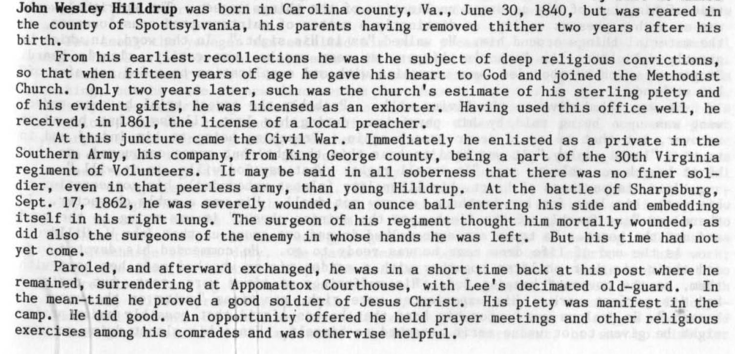John Wesley Hilldrup biography - Text Images from "Memoirs -- 200 Years" - Soldiers of the Cross, 1785-1987" by W.D. Keene, Jr.