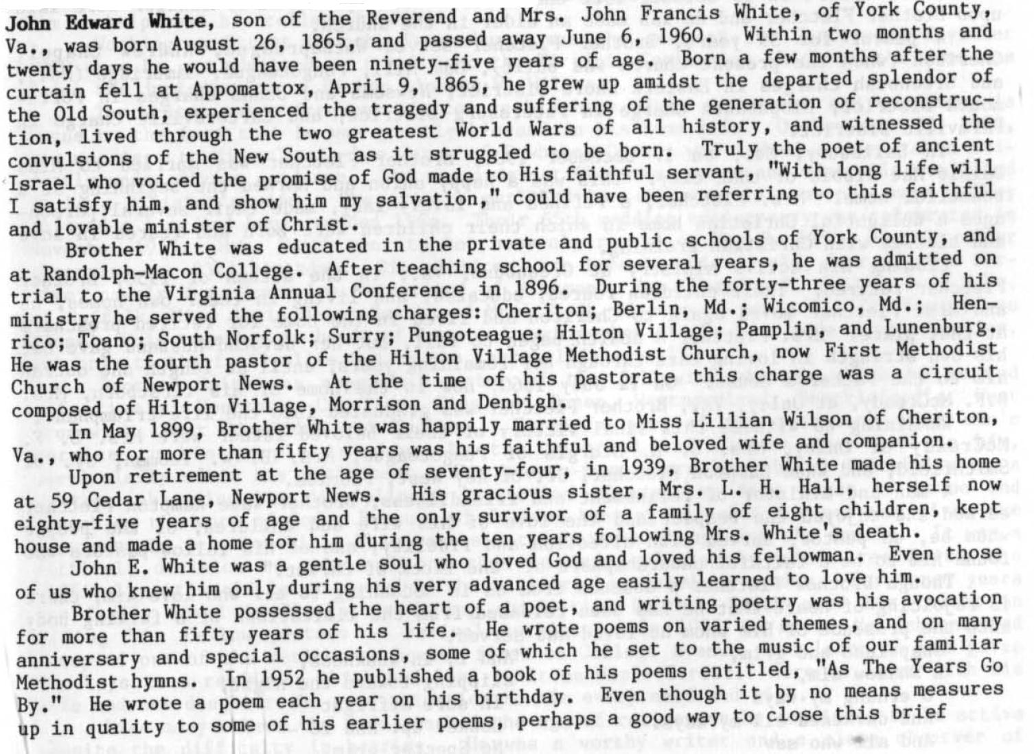 J. E. White biography - Text Images from "Memoirs -- 200 Years" - Soldiers of the Cross, 1785-1987" by W.D. Keene, Jr.