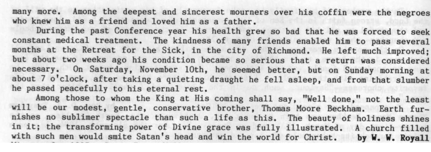 Thomas M. Beckham biography - Text Images from "Memoirs -- 200 Years" - Soldiers of the Cross, 1785-1987" by W.D. Keene, Jr.
