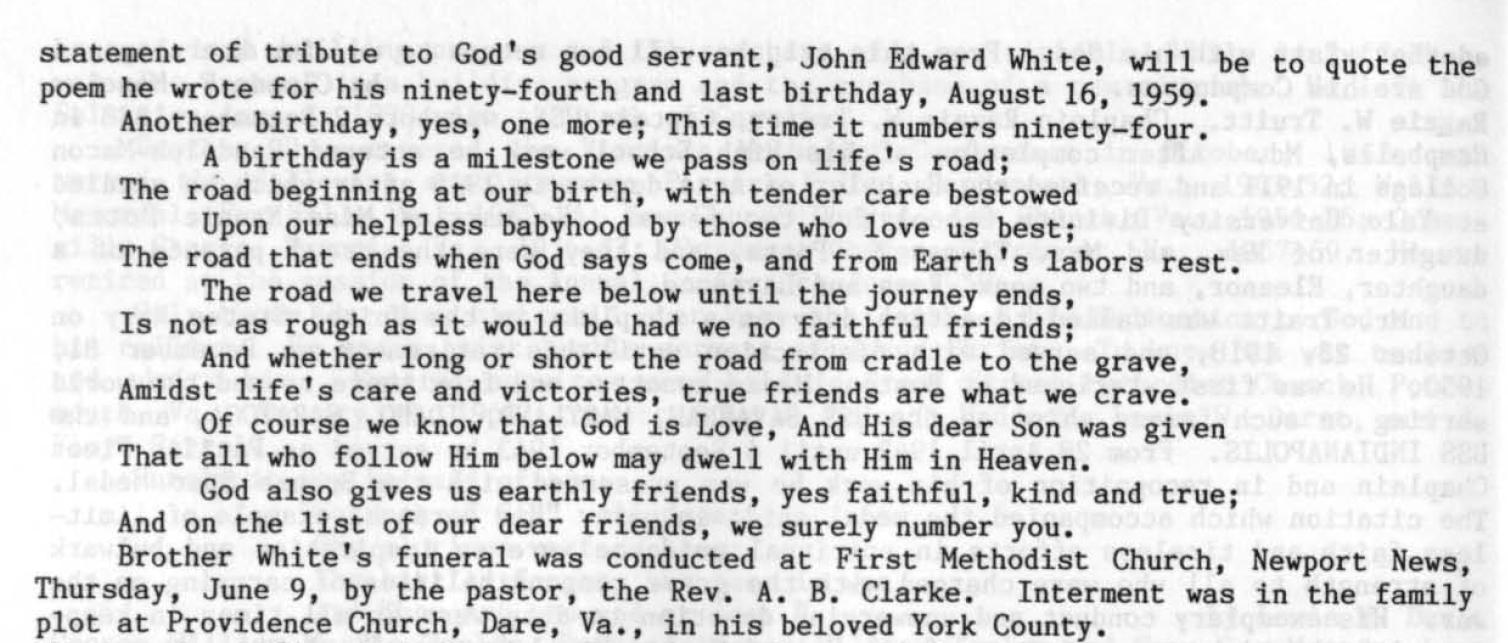 J. E. White biography - Text Images from "Memoirs -- 200 Years" - Soldiers of the Cross, 1785-1987" by W.D. Keene, Jr.